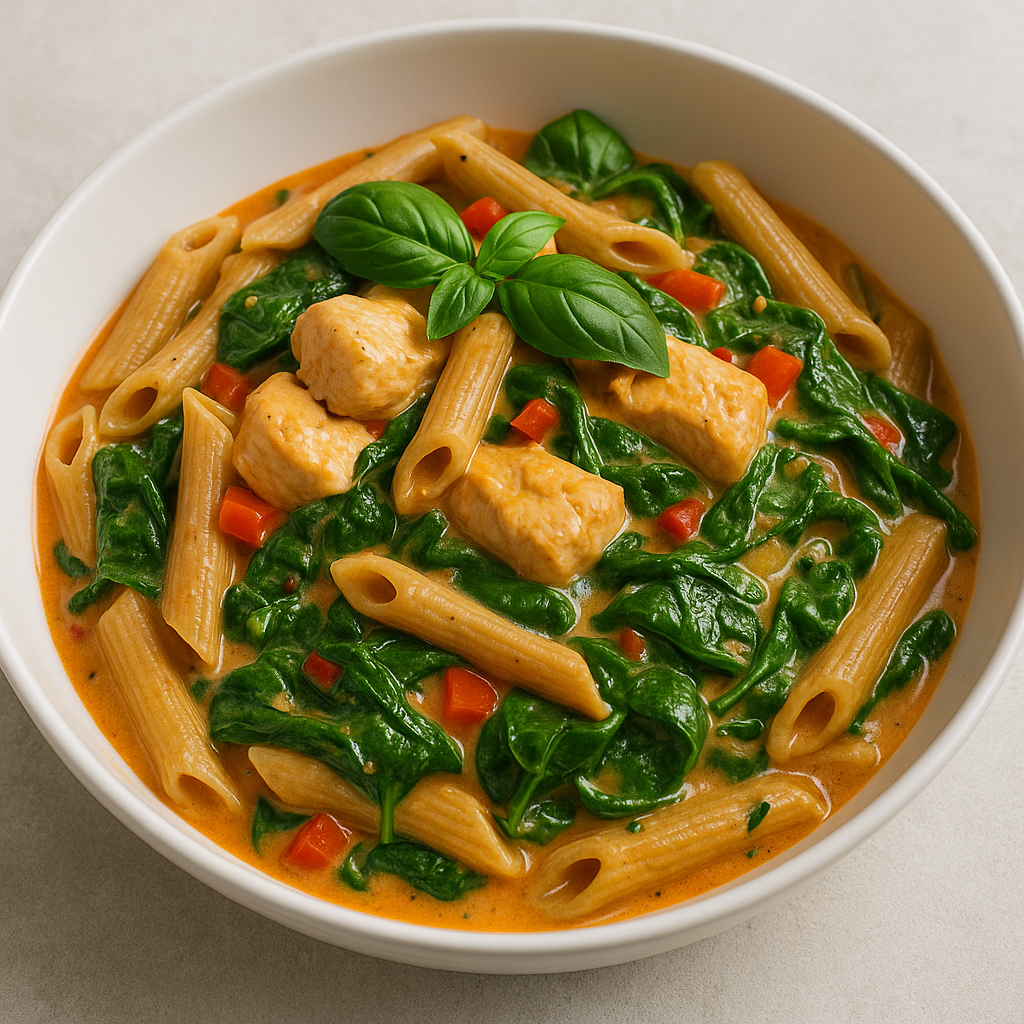 - Servér i dybe tallerkener og pynt med frisk basilikum eller andet grønt.
